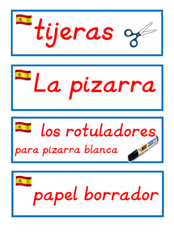 Spanish and English Classroom Lables - Pinterest The labels use Gómez&Gómez color codes (blue for English, red for Spanish). L Lidón Beltrán Teaching Spanish Classroom Supplies New Classroom Kindergarten Classroom This pack contains 95+ labels of classroom supplies for dual language classrooms. Labels contain pictures and are color-coded blue (English) and red (Spanish). M Mr and Mrs Brightside