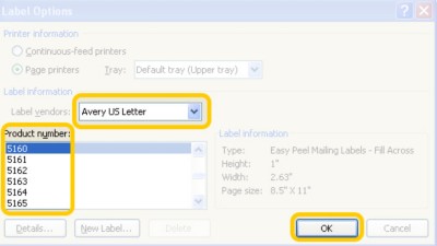 Label Printing: How To Make Custom Labels in Word - enKo Products Click on Options to open the Label options window. Instead of clicking on New label to create your custom label, choose a label vendor from the Label vendors dropdown menu. Choose a product from the Product number field and then click OK. Type the label information in the Address text box. Click OK and then configure other settings before ...