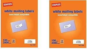 Staples White Mailing Labels for Laser Printers, 1 x 2.62 Inch, 100 Sheets, 3000 Labels, (2 Pack)