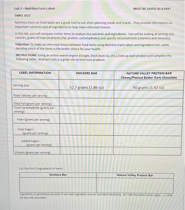 Food Labels | CDC - Centers for Disease Control and Prevention Understanding the Nutrition Facts label on food items can help you make healthier choices. The label breaks down the amount of calories, carbs, fat, fiber, protein, and vitamins per serving of the food, making it easier to compare the nutrition of similar products. What kind of information do food labels provide? - Sage-Advices The food label is an important communication tool that provides consumers with information about a product's composition, nutritional profile, and quantity of contents so that they can make product comparisons and selections. Consumers want this label information presented in an easy to understand and transparent way. Do food labels provide nutrition information about packaged foods ... Nutritional information panels (NIPs) are a part of the food label. These tell you what nutrients the food contains and how much of each nutrient there is. When you buy a packaged food product, have a look at the back of the packet. You should be able to see a box with a heading like 'Nutritional information'. Food Labeling & Nutrition | FDA Food labeling is required for most prepared foods, such as breads, cereals, canned and frozen foods, snacks, desserts, drinks, etc. Nutrition labeling for raw produce (fruits and vegetables)...
